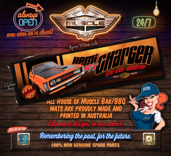HEMI CHARGER FIFTY YEARS OF CHARGER BAR RUNNER HOUSE OF MUSCLE BAR MAT