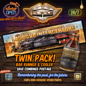 $7.99LAST OF THE V8 INTERCEPTORS VILLAINS 40 YEARS BAR RUNNER & STUBBY COOLER TWIN PACK