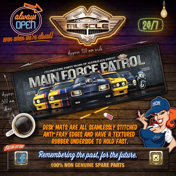 MAIN FORCE PATROL MFP 40 YEARS PROFESSIONAL DESK MAT HOUSE OF MUSCLE DESK MAT SEAMLESSLY STITCHED, ANTI-FRAY EDGES, TEXTURED RUBBER UNDERSIDE TO HOLD FAST THE QUALITY IS SIMILAR TO A PROFESSIONAL GAMING MAT