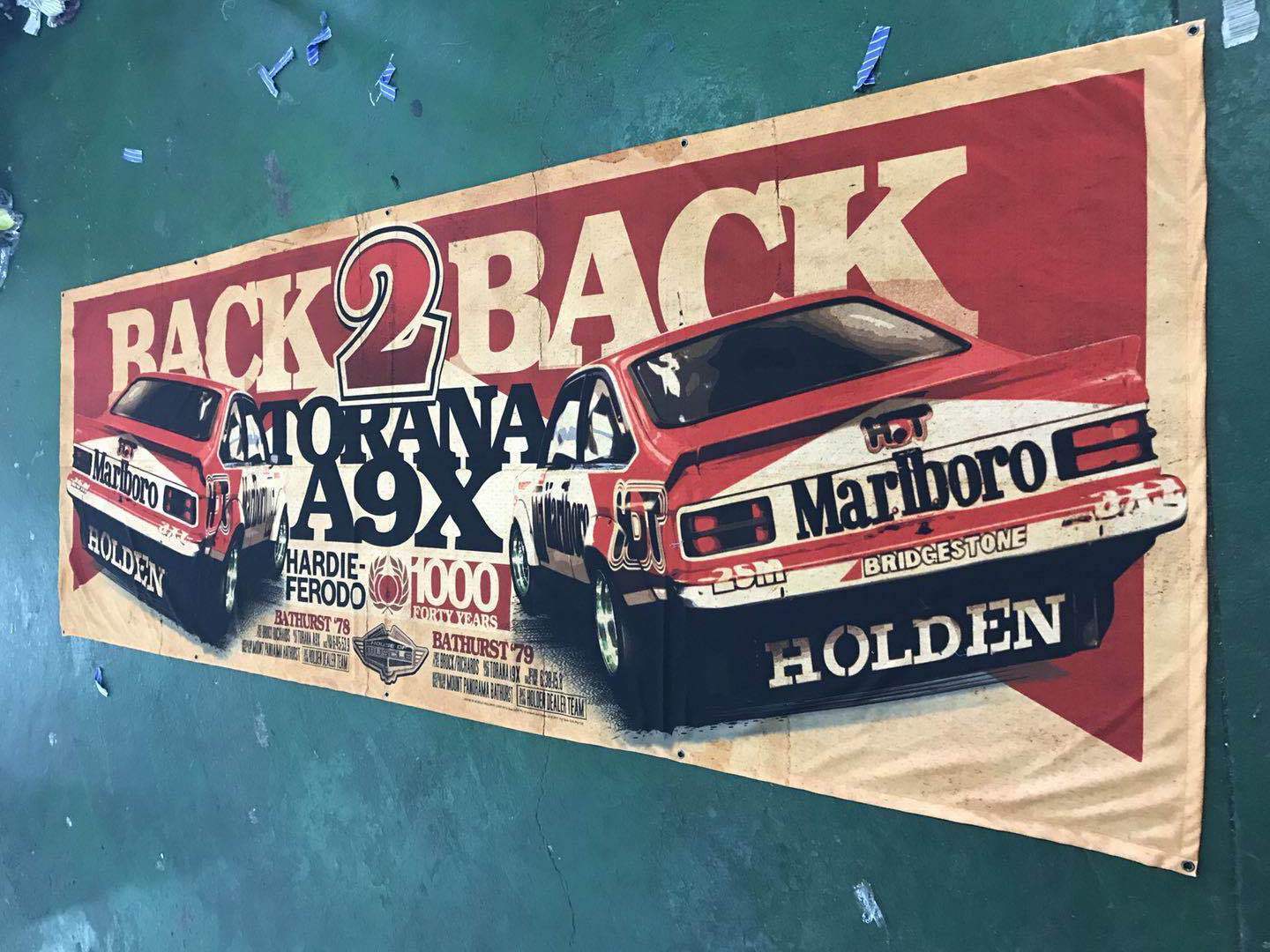 TORANA A9X BACK 2 BACK RETRO 1978 1979 BATHURST VICTORIES FABRIC BANNER